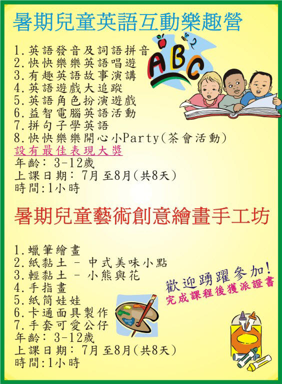 此英語夏令營重點提高各學生的聽、講、答能力,加強學生應答及書寫技巧,培養學生的思考能力,從而增強學生對英語學習的自信心。